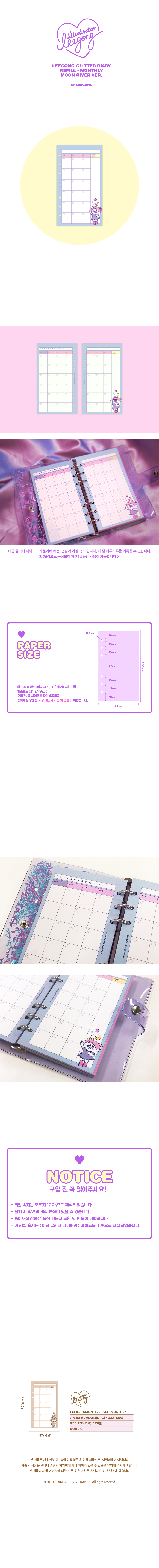 6공 다이어리 리필 속지 문리버 버전 먼슬리