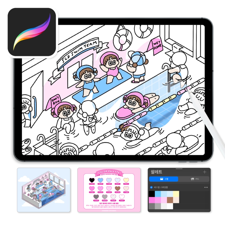 컬러링 시트 파스텔 스위밍풀 버전